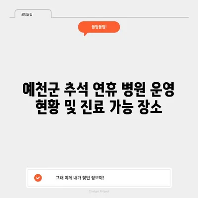 예천군 추석 명절 연휴 동안 병원 운영 정보를 살펴보며, 명절 기간 내 병원 선택과 방문에 대한 유용한 정보를 제공합니다.